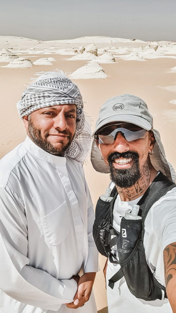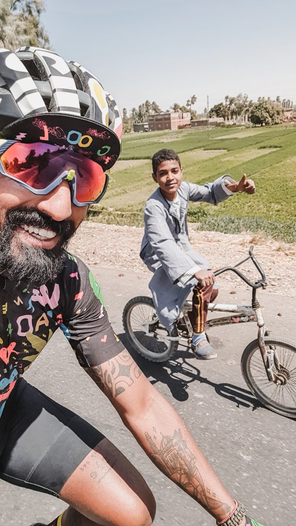 Il viaggio partirà da El Alamein. «Sono stato militare, andrò al sacrario e lascerò il mio cappello da alpino. Lo sento come un dovere. In fondo, El Alamein è una parte di Italia, in terra egiziana, dove durante la guerra hanno perso la vita troppe persone». Poi ci si sposterà verso Alessandria d’Egitto, la città natale del padre di Omar. «L’ultima volta che sono stato ad Alessandria era il 1992, per le vacanze d’agosto, a casa della nonna. Quell’anno ci fu il terremoto, la piramide di Giza venne danneggiata, e noi tornammo a casa solo a ottobre inoltrato perché i voli erano sospesi. La casa di mia nonna subì dei danni e pendeva da un lato, così, per far stare dritto il letto e riuscire a dormire, gli mettevamo dei libri sotto». Da qui, Omar si muoverà verso il Cairo e poi verso l’Oasi desertica di Bahareya. «Sarà una strada desertica di 400 chilometri. Farò circa 50 chilometri al giorno e ne uscirò in otto giorni. A fianco a me scorreranno due deserti: quello bianco, calcareo, di pietre e il “grande mare di sabbia” del deserto occidentale». E via verso l’oasi di Dakhla, di Kargha e finalmente Luxor, la Valle dei Re. L’ultima tappa, ad oggi, sarà Aswan, ma Omar confessa che, in fondo, gli piacerebbe arrivare ad Abu Simbel e, se ne avrà modo, ci proverà.
