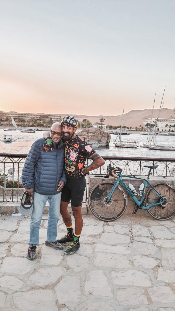 Dopo più di un anno, Omar Mohamed Ali e suo padre si sono incontrati oggi all’aeroporto del Cairo e per più di tre settimane viaggeranno assieme nelle loro terre originarie, quelle d’Egitto. Omar correrà e pedalerà, papà lo aspetterà insieme alla squadra di supporto e al pomeriggio chiacchiererà con lui e visiterà città. In fondo è stato proprio papà a volere questo viaggio assieme. «Quando gli ho telefonato e gli ho detto che avevo intenzione di partire alla volta dell’Egitto, mi ha subito detto che, se fossi partito, lui sarebbe stato al mio fianco». Fino a qui potrebbe essere una storia come tante altre, invece no, perché Omar e papà sono stati lontani per troppo tempo e ancora oggi non si conoscono pienamente.